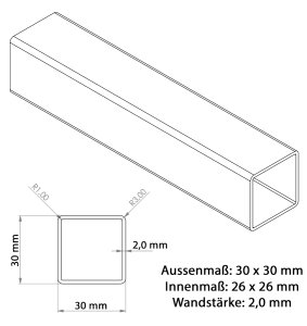 Edelstahl Vierkantrohr / Quadratrohr 30x30x2,0 mm